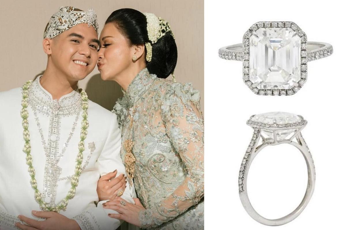 Cincin ini memiliki berat total 5,35 karat dan diperkirakan bernilai Rp4,4 miliar. Paduan antara potongan emerald dan lingkaran berlian kecil di sekelilingnya membuat cincin ini terlihat begitu memesona.