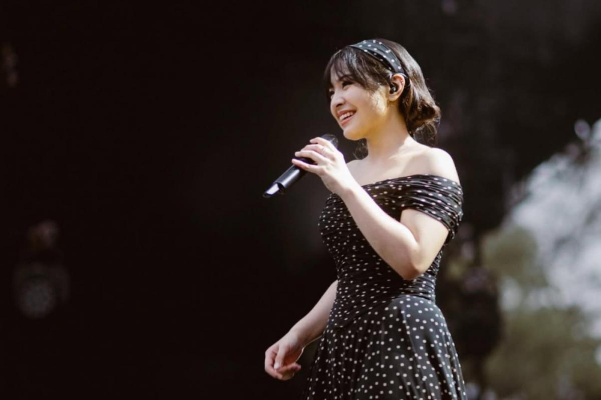 Bukan cuma suara, visual Bernadya juga mencuri spotlight. Ia tampil manis dalam gaun hitam bermotif polkadot rancangan @lotv_by_joanafransiska.
